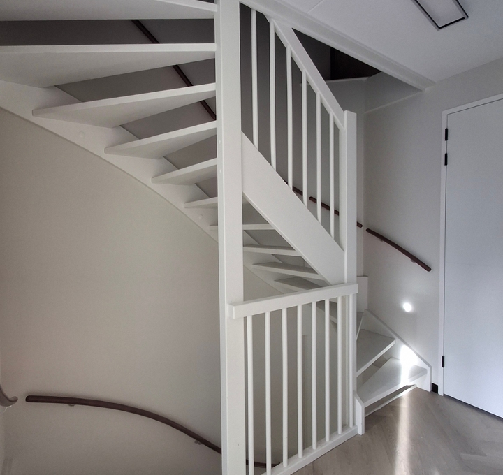 Bijna alle vertrekken van boven naar beneden zijn voorzien van een fijne spacklaag op kleur.