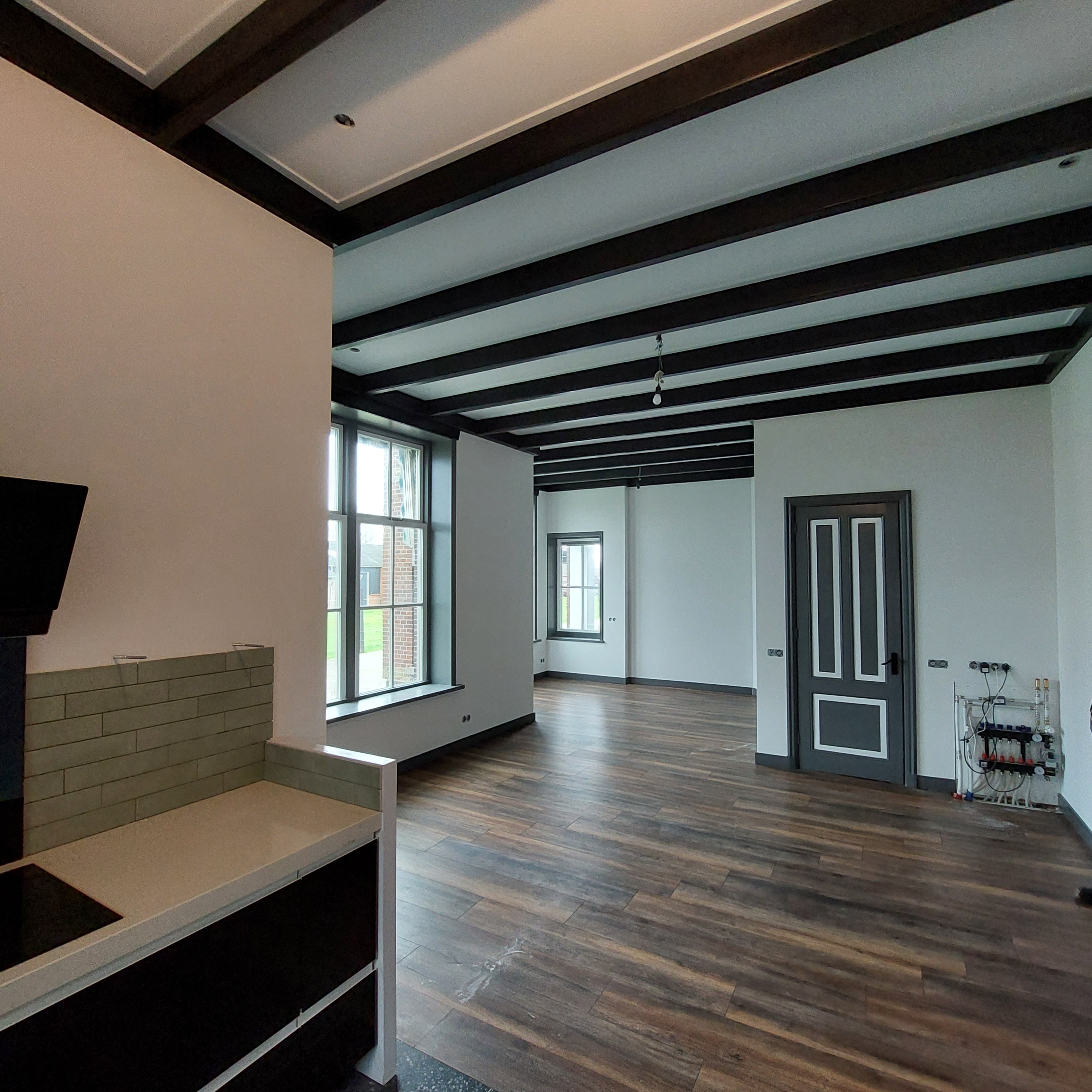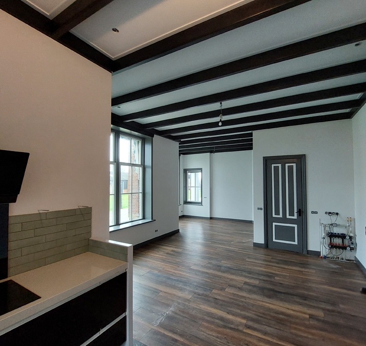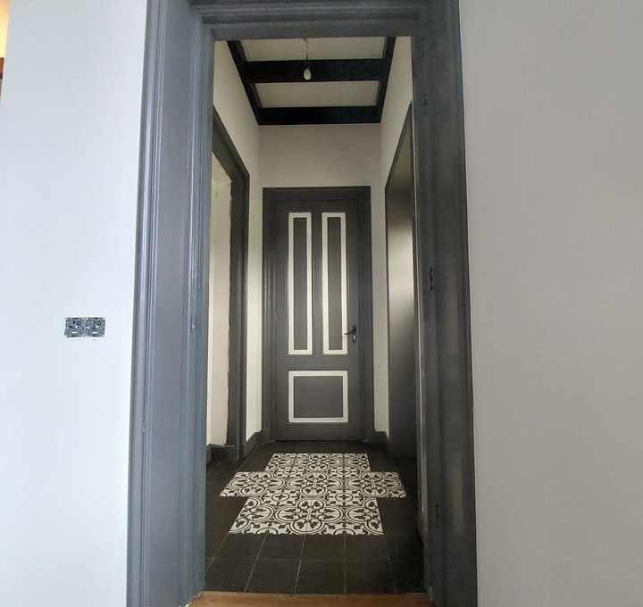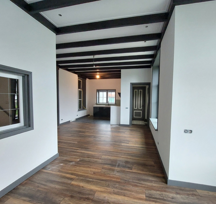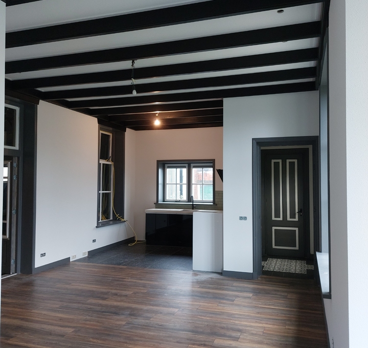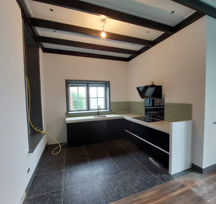 Deze woonkamer/keuken en entree, hebben we mogen uitrepareren en spacken in een fijne structuur.
