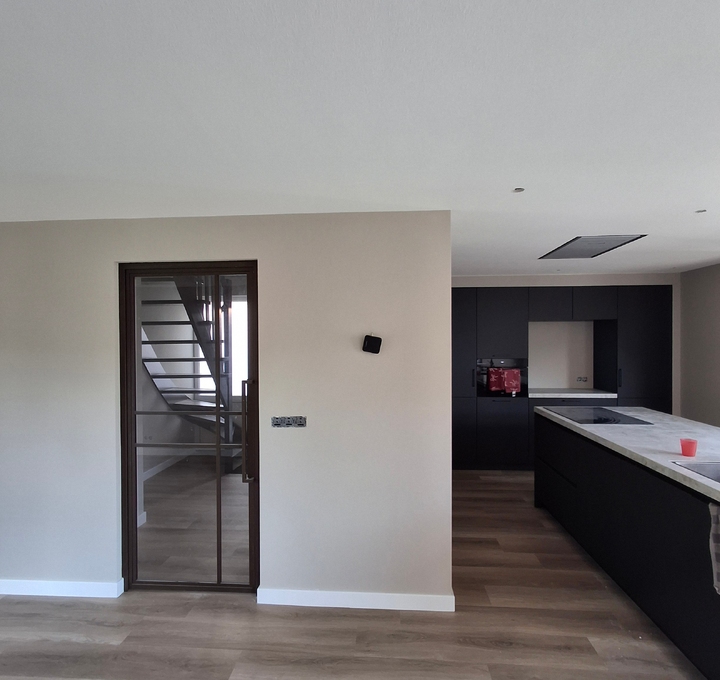 In deze prachtige vrijstaande woning, hebben we zowel wanden als plafonds mogen voorzien van een fijne structuur laag in 2 kleuren.