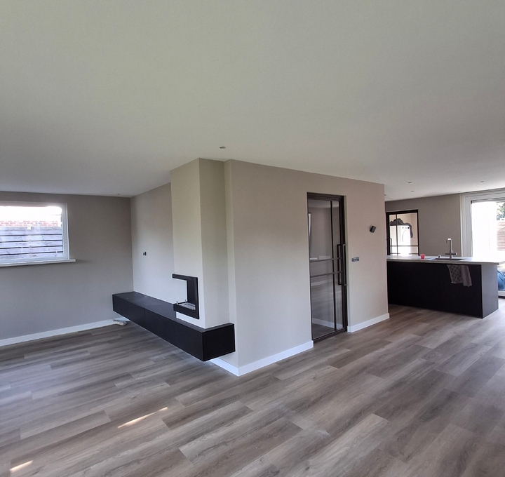 Wederom een top resultaat in deze combinatie. De lichte plafonds zorgen voor een optisch hoger plafond waardoor de ruimtes nog groter lijken.